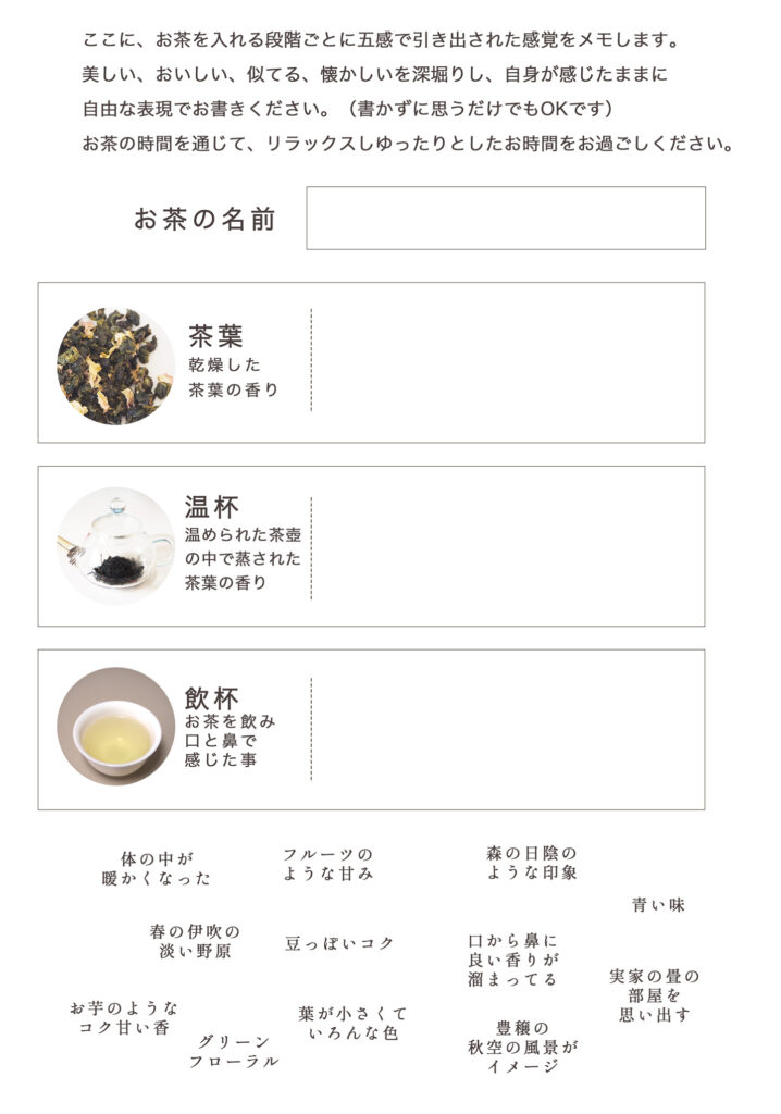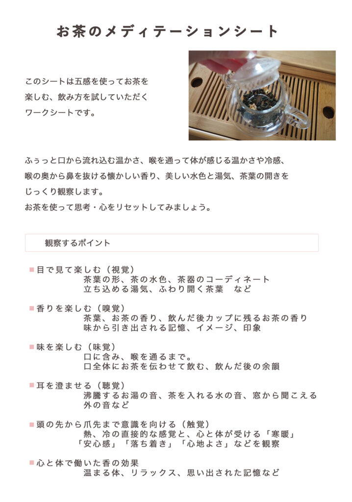 そして、お茶を飲みながら五感を一つづつ確かめることができるようになり、