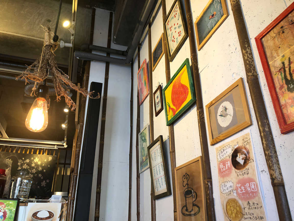 店内は可愛らしい絵がたくさん飾られてあり、照明もおしゃれです。